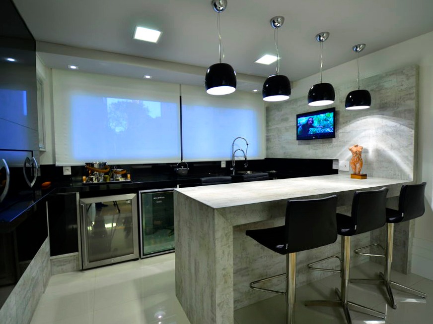 A grande aposta deste projeto de 120m2 foi a personalização de toda a área social para valorizar as funções de cada recanto e utilizar os revestimentos especiais como elementos condutores que potencializassem o convívio em família, explorando as grandes visuais do espaço e integrando-os de forma impactante, harmônica e sofisticada.